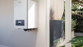 Hybridheizungen bestehen aus mindestens zwei Wärmeerzeugern, die gemeinsam zum individuellen Energiemix beitragen. Zentraler Bestandteil ist eine Wärmepumpe, die umweltfreundlich und effizient für Wohlfühltemperaturen sorgt. Zu dieser regenerativen gesellt sich eine leistungsstarke, fossile Komponente, z. B. Gas-Brennwert.